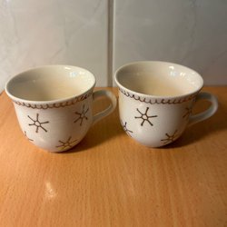 Två äldre kaffekoppar med silverstjärnor