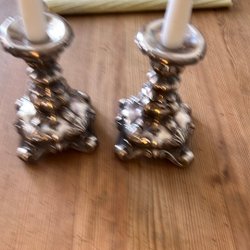 Två ljusstakar i silverfärg