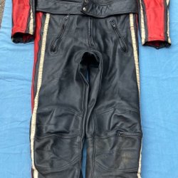 MC byxa i skinn med hängslen