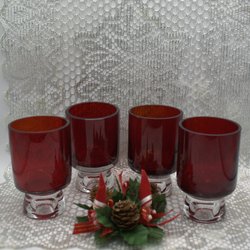 4 Röda ljuslyktor, Rejmyre Glasbruk. Design Tyko Axelsson. Från 60-70talet.