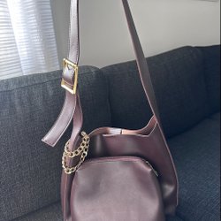 Vinröd/brun handväska
