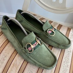 Gucci Loafers Horsebit i mocka, grön, storlek 38.5