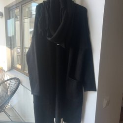 Ny med prislapp - stor mysig svart kofta med halsduk från Top secret - strl 36