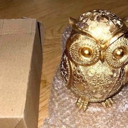 Ny i kartong spargris - Guldfärgad uggla