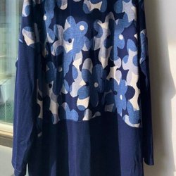 Stor oversize v-ringad blå tröja / tunika i strl XXL med stora blommor.