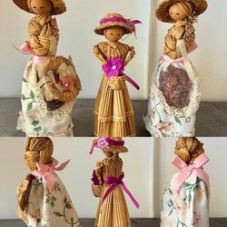 3 vintage straw dolls dockor docka Halmfigur stråhatt