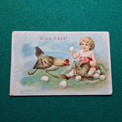 Påskkort Glad Påsk med barn, höna och kanin