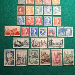 Liten samling gamla franska frimärken
