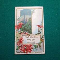Julkort med julstjärnor och slott från USA