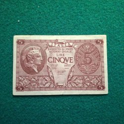 Italiensk sedel 5 Lire