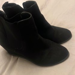 Svarta kilklackskängor