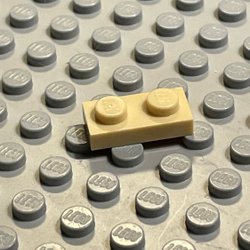 Tan Plate, Modified 1 x 2 with 1 Stud with Groove and Bottom Stud (15573) 1st