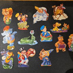 Glansbilder av Roliga djur, från olika ark. Michaêlis??