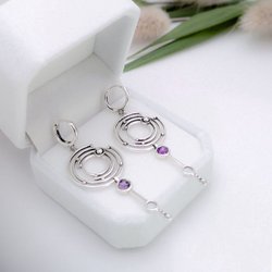 Örhängen hoops geometriska lila sten silver etno 56x20mm