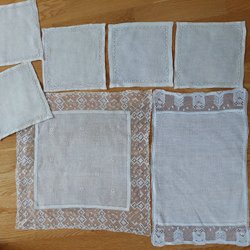 Äldre Dukar och löpare med broderier och spets, 6 st