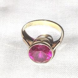 Äkta 14k gulguld med Cerise sten Ring stl 17, 7