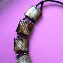Ett fint, halvfast halsband. Bestående av bl.a. 6 stycken, fyrkantige, 2 x 2 cm.