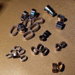 diverse stål färgade ovala "distans pärlor", i storlekar mellan 8 och 25 mm.
