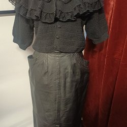 Svart Kofta med Volang zara och Läderkjol vintage
