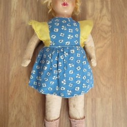 Docka med tygkropp och blont hår, vintage
