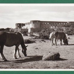 Borgholms slottsruin med hästar