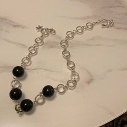Halsband med svarta pärlor och silverfärgade detaljer