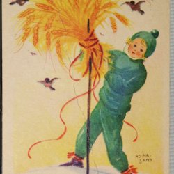 Nyårskort. Adina Sand. Flicka med kärve.