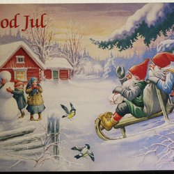 Julkort. Erik Forsman. Tomtarna samlas.