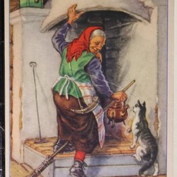 Påskkort. Jenny Nyström. Kvinna med tupp.