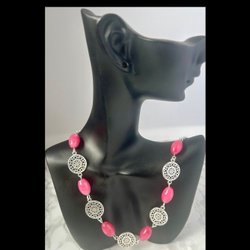 Handgjorda smycken av halvädelstenar med olika material.