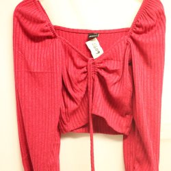 Festligt fin, mörkröd med knappar / Topp / Never Mind - Stl XL