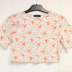 Blommig och kortärmad crop top/topp - Boohoo - Storlek 34