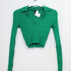 Långärmad och ribbad crop top/topp - H&M - Storlek XS