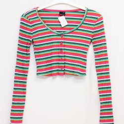 Randig, färgglad och långärmad crop top/topp - Gina Tricot - Storlek XXS