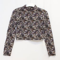 Blommig och långärmad crop top/topp med liten polokrage - Bik Bok - Storlek S