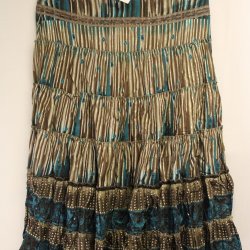Festligt läcker, kort beige/ljusgrön med mönster / Kjol / Collusion - Stl 38
