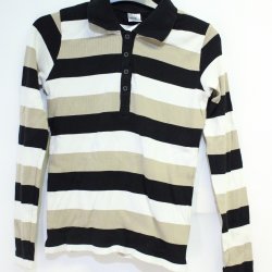 Lingon & Blåbär / Långärmad Piké / Storlek 160/Small / Svart-, vit, beigerandig
