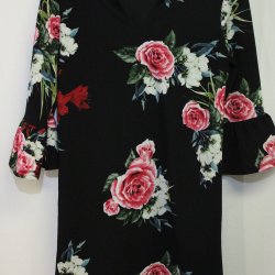 Festlig, blommig Mörk med Röda Rosor Topp - Okänt märke - Stl ?
