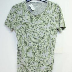 Dressman / T-Shirt / Storlek S / Grön, grå med växtmotiv