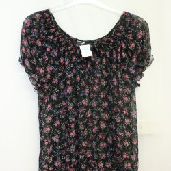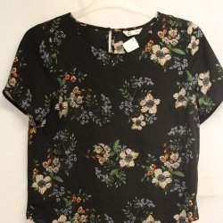 Festlig, blommig Mörk med Röda Rosor Topp - Okänt märke - Stl ?