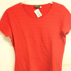 Strukturerad, klarröd och kortärmad topp/top eller tröja - Joy - Storlek L