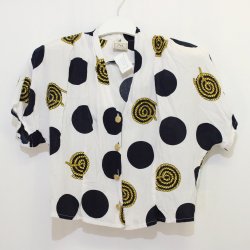 Retro och prickig blus med marint tema och axelvaddar - Doc by Bex - Storlek M