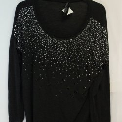 SaoPaulo / Svart färgad vardags fin & kristaller på tröjan / Storlek 40 / Svart