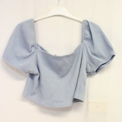 Ljusblå och ribbad crop top/topp med puffärm - H&M - Storlek XL