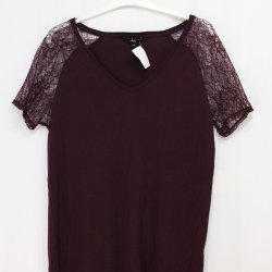 Lila topp/top/tröja, kortärmad med spets - Ellos - Storlek 42/44