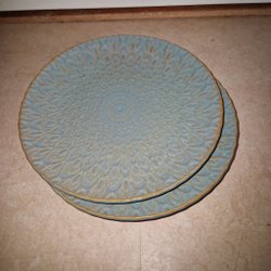 2 tallrikar i grönt med mönster