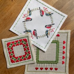 3 SMÅ HANDBRODERADE JULDUKAR