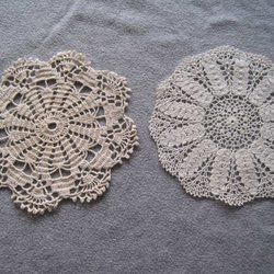 2 st Virkade beige runda små dukar