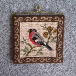 Äldre Broderad Liten Väggbonad Fåglar Domherrar
