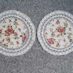 2st runda dukar med tryckt mönster och spetskant
